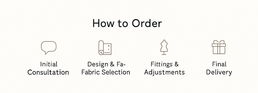 Design & Fabric Selection – Choose from our curated couture fabrics, hand-beaded lace, and signature embellishments.